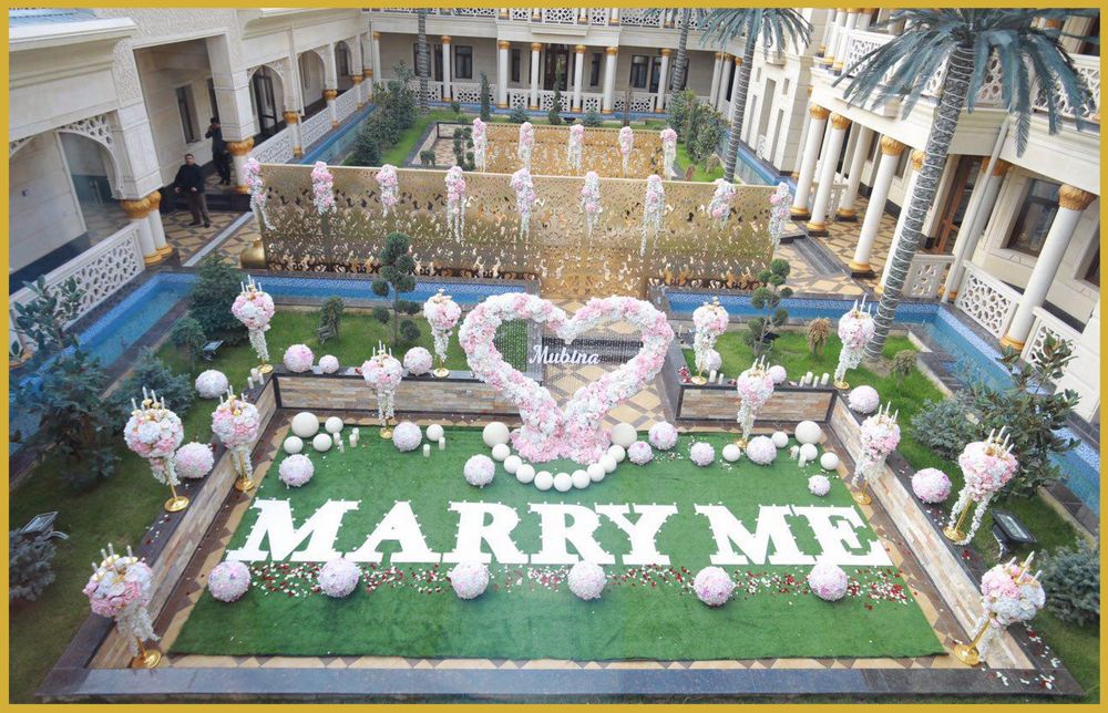 С участием живого исполнения, тысяча живых цветов и усеянными ими пол, ну и конечно будущяя невеста - как она может отказать будущему жениху в таком месте + в такой обстановке - ей сделали такое предложение от которого она не смоглабы - даже если захотела бы сказать нет! Нереально!